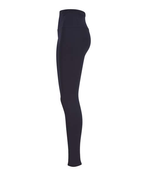 High-waisted leggings with inner drawcord. Concealed zip phone pocket on the rear waistband. No side seams for comfort. Contains 80% recycled polyester.
