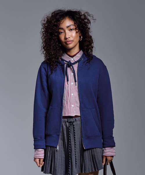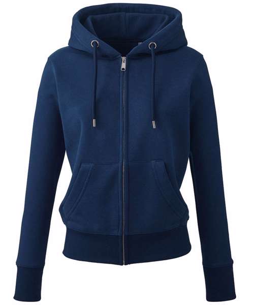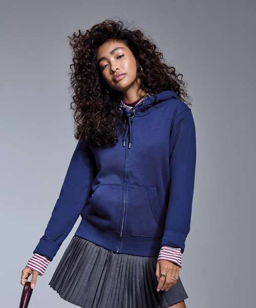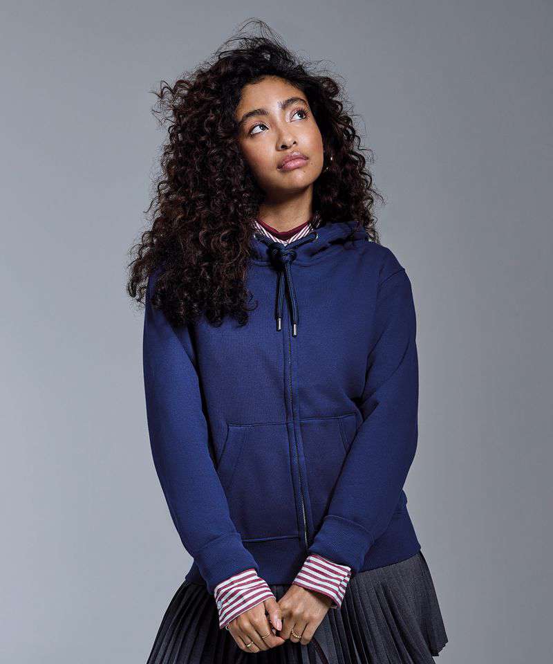 At Anthem we pride ourselves and our styles on three main values: ethically sourced, high quality fabrics and ideal for the imprint market. All these characteristic can been found in our women’s Anthem full-zip hoodie. This incredibly soft-feel style is created with organic cotton, with the addition of recycled polyester in our marl colours. Twin-needle detailing throughout with high quality finishes and a concealed zip make this style perfect for print.