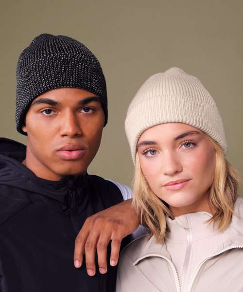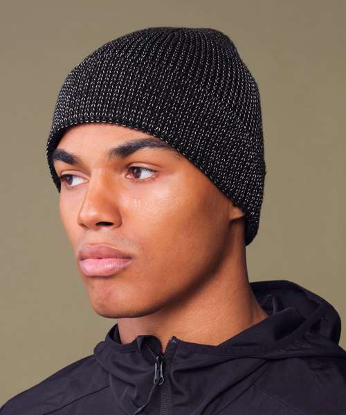 Contains 100% certified, recycled polyester. Lightweight, breathable fabric. Highly reflective fibres. Unisex styling. Double-layer knit. Engineered crown for maximum comfort. Cuffed design for optimal decoration. TearAway label for easy rebranding.