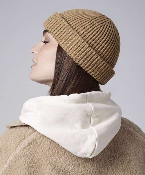 Taking cues from the original fisherman beanie shape, but with added depth, the shallow-engineered crown on the B383R is comfortable and stylish. The double cuff gives the silhouette a plush premium feel and the single-layer, ribbed knit fabric is made with at least 50% recycled polyester content, making for a fashion-forward style.
