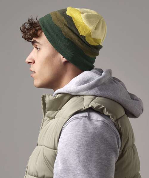 Whether you’re in mountainous high altitudes or back at ground level in the great outdoors, stay warm and protected in bold style. With its selection of mountainscape-inspired colourways, this beanie provides the perfect finishing touch to any outdoorsy ensemble – and, containing 100% recycled polyester.