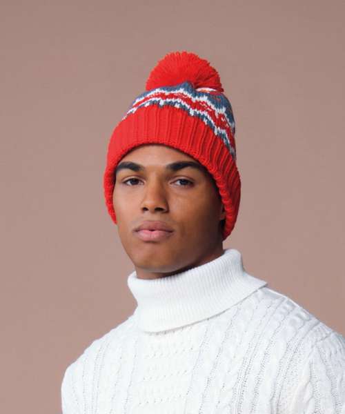 Inspired by classic alpine style, the Retro ski beanie blends vintage charm with modern winter comfort. Featuring a traditional Fair Isle knit and soft-touch self-coloured pom pom, it’s fully lined with recycled microfleece for added warmth. The cuffed design provides a clear area for decoration, making it ideal for après-ski styling, seasonal collections and retro-inspired ranges.