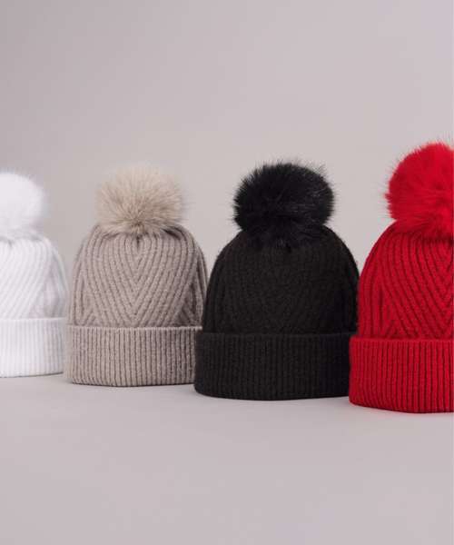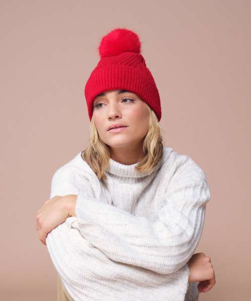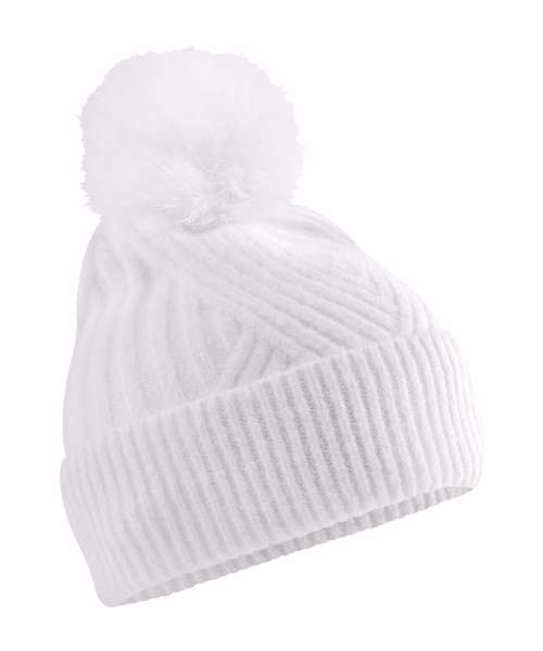 Sumptuous heavy ribbed knit. Soft-touch fabric. Retro styling. Luxury faux fur pom pom. Cuffed design for optimal decoration. TearAway label for easy rebranding.