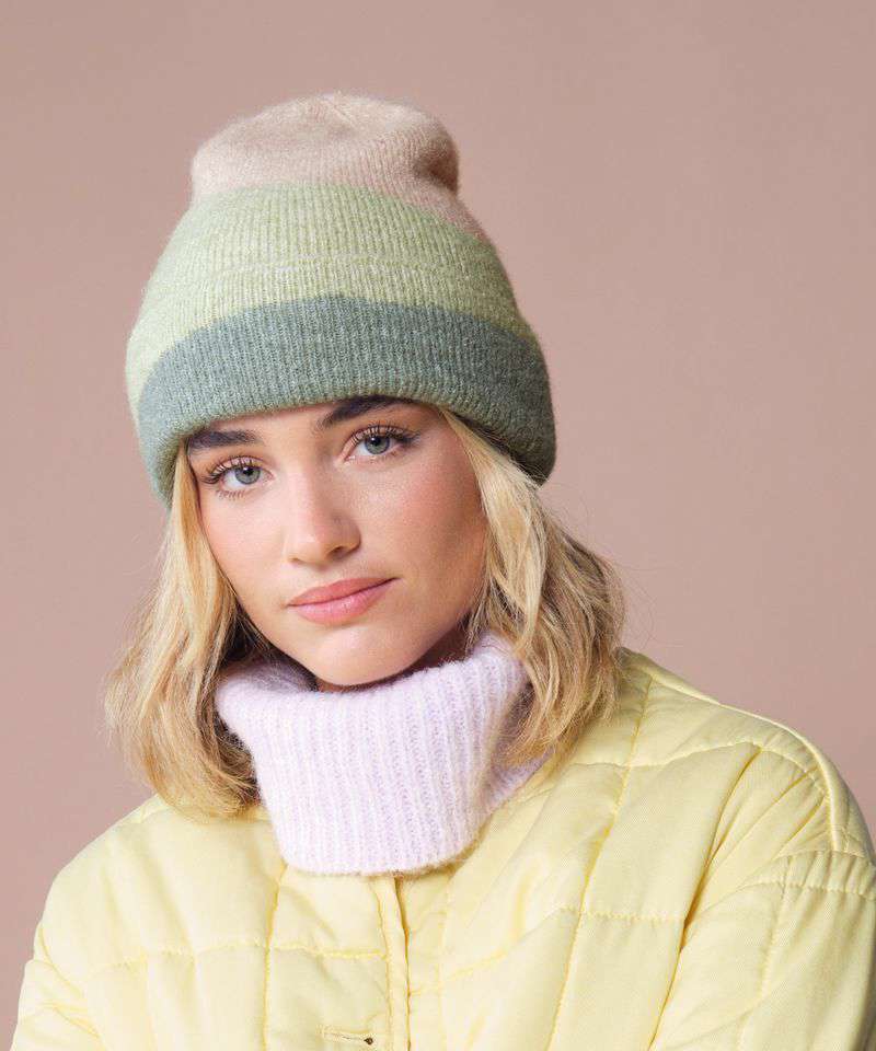 Jacquard knit design. Soft-touch fabric. Tonal colour wave design. Double-layer knit. Engineered crown for maximum comfort. Wide cuffed design for optimal decoration. TearAway label for easy rebranding.