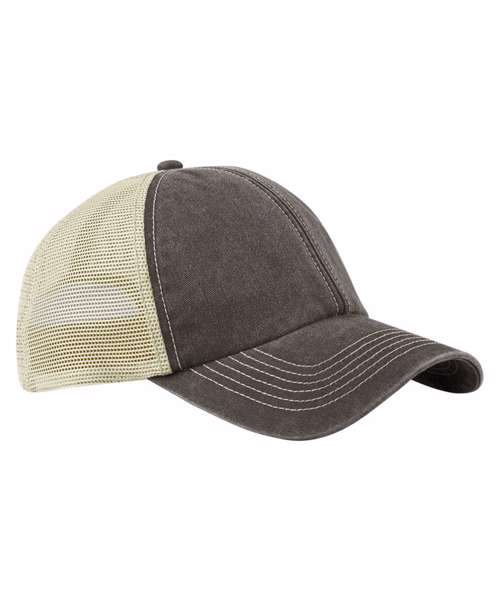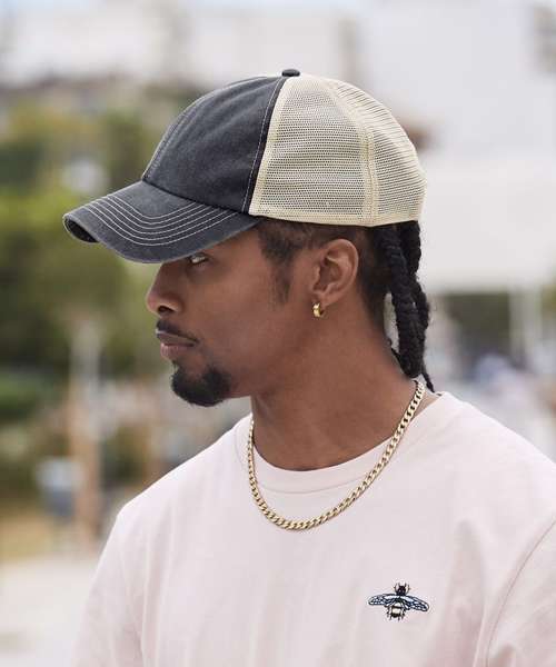 100% Heavy washed cotton. 100% Recycled polyester mesh rear panels