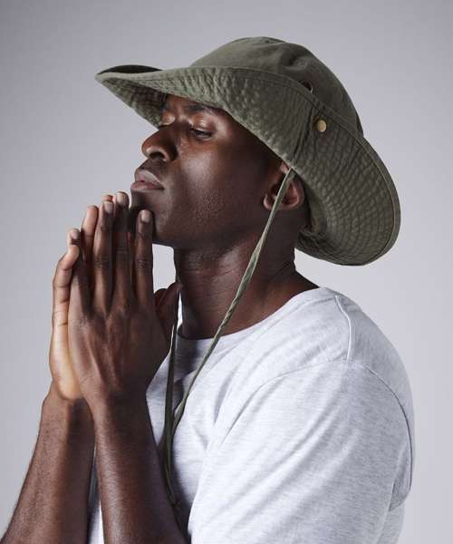 - UPF50+ protectionChin strap with leather togglePress stud side turn-ups