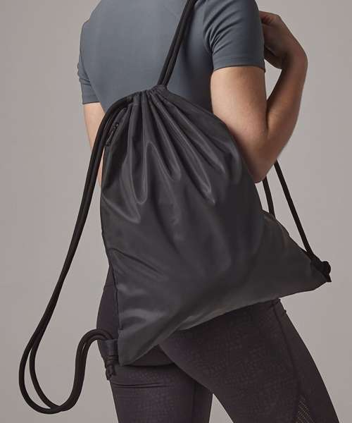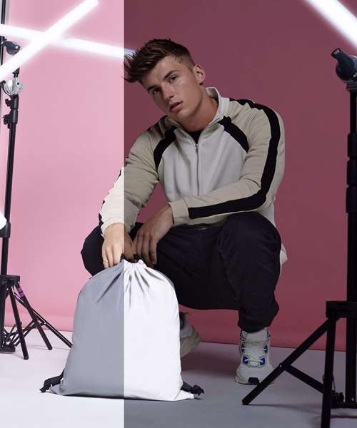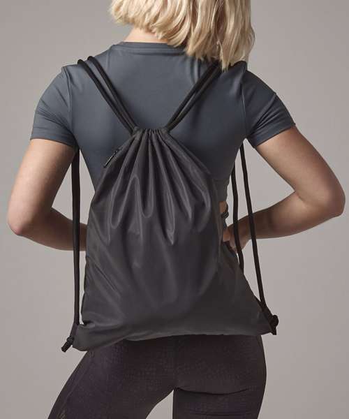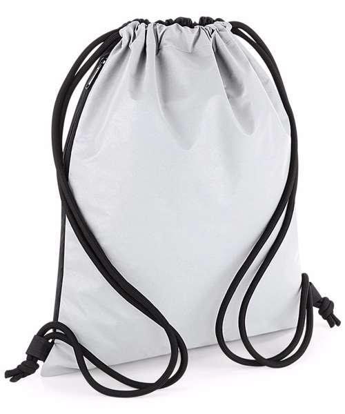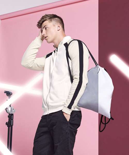 TearAway label for ease of rebranding. Lightweight yet durable. Reflective powder coating for enhanced visibility. self-fabric cord loops for ease of decoration. Zippered external stash pocket. Chunky drawcord closure.