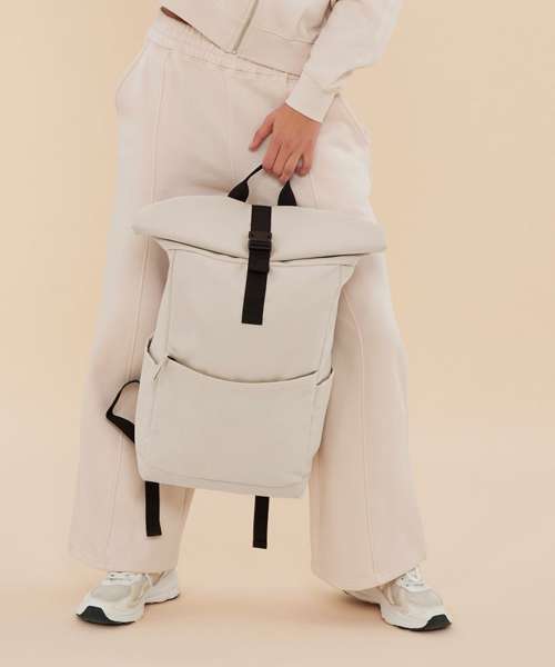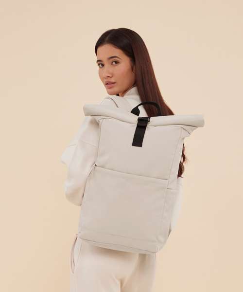 BagBase’s EveryWear roll-top backpack fuses style and function – with its versatile minimalist design, it’s perfect for everyday commuting or outdoor pursuits. The roll-top design makes it easy to wear and adds a contemporary edge, while the top strap allows it to be carried or worn comfortably. Crafted in 100% recycled polyester, this backpack offers versatility and effortless style. A practical companion for those who appreciate understated fashion with a functional twist.
