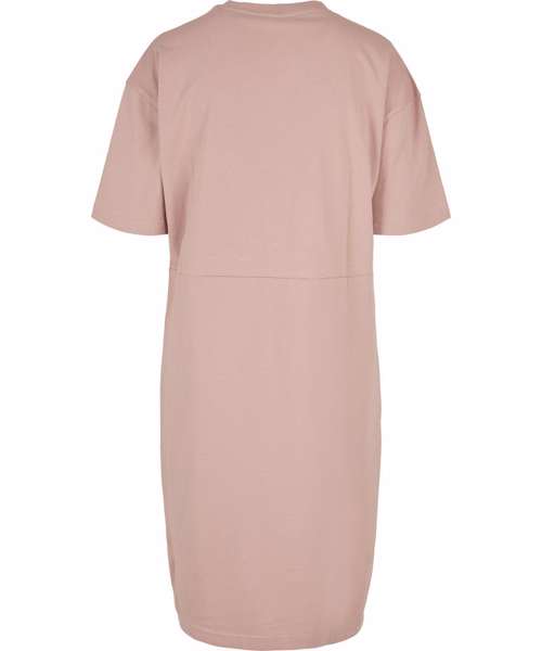 With an urban look, plus an extra touch of casual, this eye-catching dress employs a straight, oversized cut. The upper body area is strongly reminiscent of a relaxed tee and, from the hips, is slit on the right, which heightens both wearer comfort and visual appeal. The dividing seam is at waist level and the shoulders are dropped. The dress can further be refined via embroidery or print options.