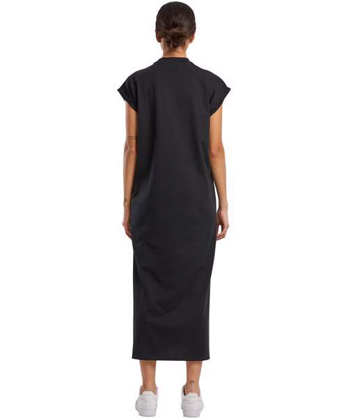 The Women’s long extended shoulder dress is a sophisticated addition to any wardrobe, offering a perfect blend of comfort and style. Designed with a contemporary H-shape cut, it provides a flattering loose fit that drapes elegantly over the body. The calf-length design adds a touch of grace, making it suitable for various occasions. Its collarless neckline transitions into a chic racerback, providing an understated yet modern aesthetic. The dress features short sleeves with cut-on shoulders, offering ease of movement and a relaxed silhouette. With its uni pattern, this piece exudes timeless elegance and versatility, allowing for effortless pairing with accessories or outerwear. This dress embodies minimalist sophistication while delivering exceptional comfort, making it an essential piece for those who appreciate understated elegance in their fashion choices.