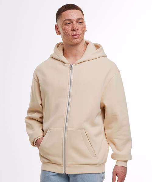 Loose fit. Dropped shoulders. Full metal-zip. Customisable split kangaroo pocket. Hood. Ribbed cuffs and hem. Half-moon at the neck.