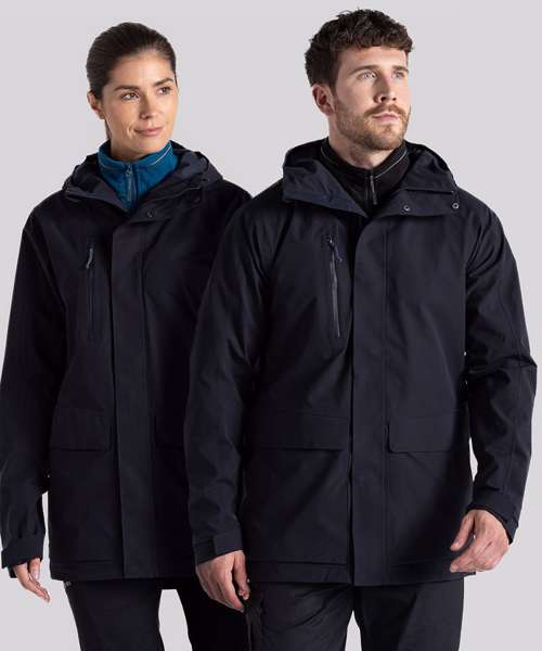 Top-notch longer length unisex jacket that’s ideal for braving the wet weather. The AquaDry membrane construction has an EcoShield DWR finish, grown-on hood and 6 pockets, including 2 bellowed stud-fastening lower with fused flaps and zipped side handwarmers.