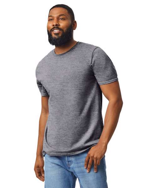Take the edge off your world’s hectic pace with the tee that always feels like a stress-free weekend. This ringspun pre-shrunk cotton Jersey is knit exclusively of deluxe 30s Softstyle™ yarns, resulting in a lightweight, highly uniform fabric that makes an excellent backdrop for embellishment in a wide array of colours. With Euro fit shoulders and arms for a fitted look, it’s a modern-day essential.