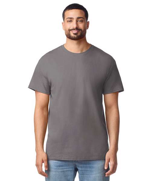 High-stitch density fabric made from 30/1 cotton. Narrow width rib collar, taped nexk and shoulders. Modern classic fit, seamless body with a TearAway label.