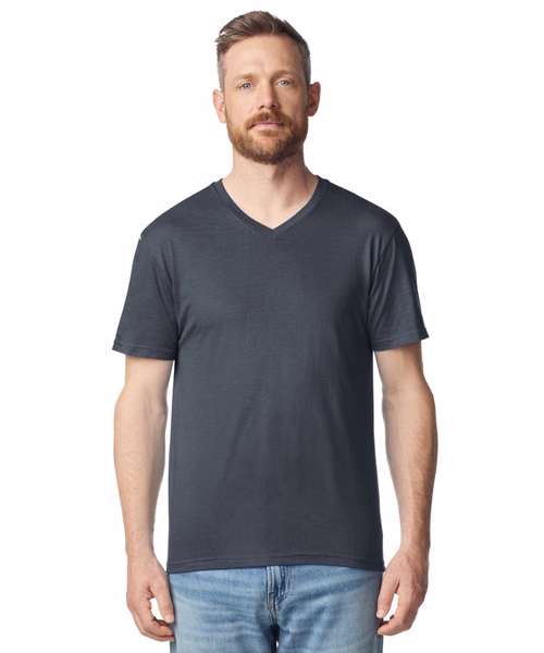 Attention to detail is evident in every inch of this wear everywhere v-neck t-shirt. The meticulously stitched mitred neckline is a refreshing change from a classic crew, and the trim Euro fit makes this tee a staple for forward-thinking teams, businesses and event organisers. The ringspun yarns are knit into a fine Jersey fabric that serves as a versatile backdrop for any form of decoration.