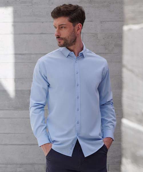 Men’s long sleeve ‘cotton-feel’ Coolplus® shirt, made from 100% Coolplus® permanent wicking fabric with cotton hand feel. Regular fit. Back yoke. Front placket with eight self-coloured pearlised buttons. Button-down collar. Adjustable cuffs. Tag-free. Wrinkle-resistant.
