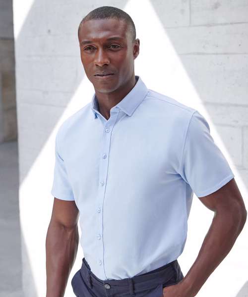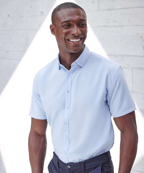 Men’s short sleeve ‘cotton-feel’ Coolplus® shirt, made from 100% Coolplus® permanent wicking fabric with cotton hand feel. Regular fit. Back yoke. Front placket with eight self-coloured pearlised buttons. Button-down collar. Tag-free. Wrinkle-resistant.
