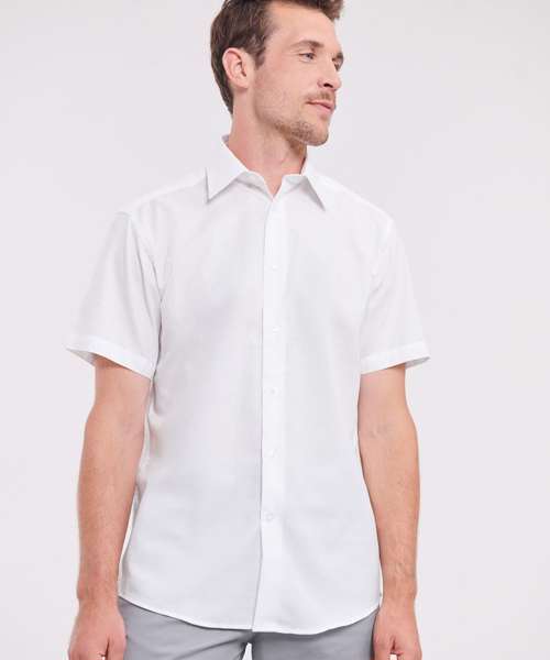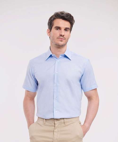 Ultra smart Oxford shirt now has tailored and classic fit options for gents and an elegant tailored fit for ladies, in a high quality Oxford fabric with excellent finish. Contemporary, tailored fit with stiffened semi-cutaway boned collar. Double turn back hem on sleeves. Rounded hem.