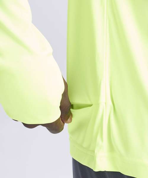 Relaxed sports fit. Thumbholes. Back waist zipped pocket. AWDis’ own lightweight Neoteric™ smooth fabric with inherent wickability and quick-drying properties. Self-fabric taped back neck. Twin-needle stitching detail. Self-fabric crew neck. Reflective tab detail. Set-in long sleeve design.