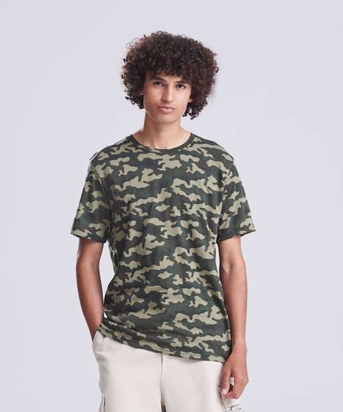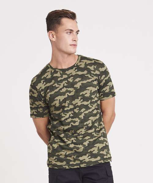 Often fitted t-Shirts lose their shape after a few months, not this one. Made from 100% cotton, the camo tee is a favourite in the Just Ts range. Cut with a stylish fit and a crew neckline, this tee is finished with a classic camouflage all over print. Team up with jogging bottoms for a casual and contemporary look.