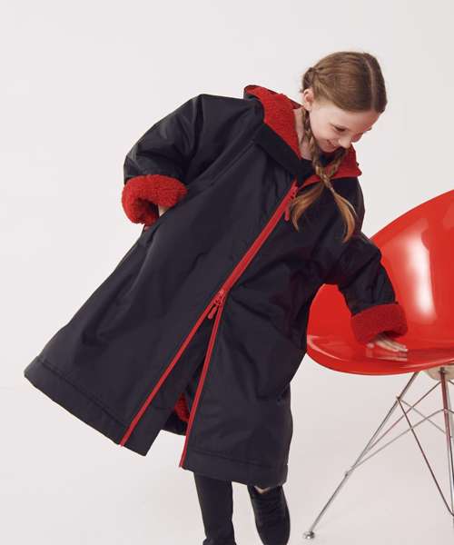 The ultimate team robe is made in a water resistant fabric with a cosy sherpa fleece lining and three-piece hood. The roomy fit with double-ended full front zip allows wearers to keep warm and get changed underneath the robe. Perfect for wild swimming or wearing on team sidelines. Zipped pockets with fleece lining keep hands warm with multiple inner pockets for keeping belongings safe. Topped off with a large embroidery zip for access to directly decorate.
