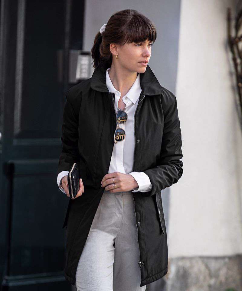 DETAILS: YKK main zip. Inner fabric vertical quilted to soft padding for insulation. Feminine ¾ length. Windproof. Water-repellent finish (Bionic Finish® ECO). SUSTAINABILITY: Reach. Global Compact. Amfori. Water-repellent - Bionic Finish® ECO