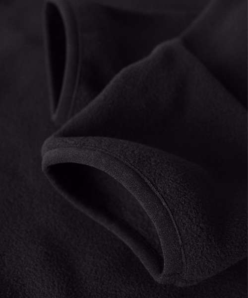 Fleece: 100% Recycled polyester. Contrast fabric: 100% Polyester (yoke, pockets and outside collar)