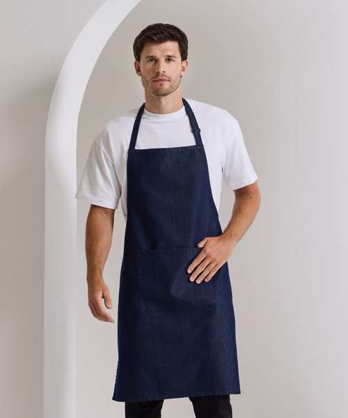 A classic bib apron that features a useful centre pocket with built in pen pocket, making this style a popular choice for waiting staff. Available in 42 colours from the Premier 'Colours Collection', this apron has a sliding adjustable buckle on the neckband so the wearer can adjust the overall length.