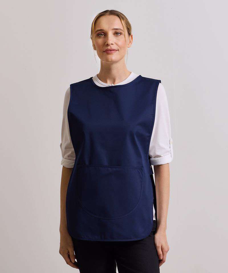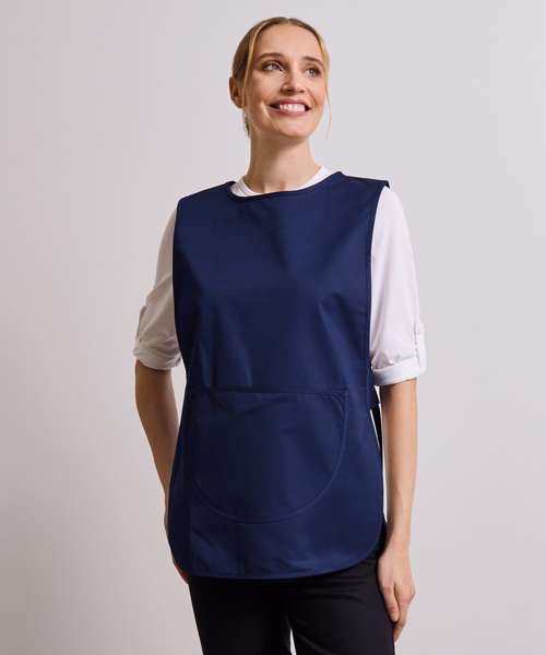 A traditional over-the-head tabard available in vibrant colours. This coverall fastens securely at the side with adjustable studs and offers great protection against spillages. In the centre is a large patch pocket with a bias trim edge, useful for carrying accessories.
