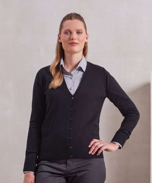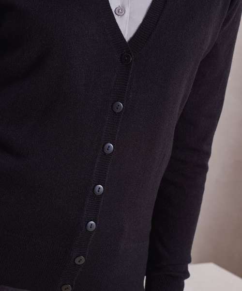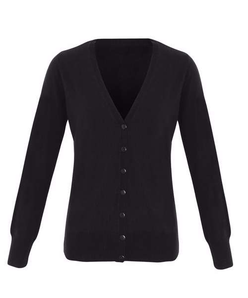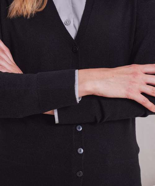 A simple easy wearing cardigan for ladies that adds layers of style to your outfit. Designed with ribbed knit set-in sleeves, hem line and v-neck for a contemporary modern look. Self-coloured button through style. A wardrobe essential for staff who need to maintain a smart corporate image at all times.