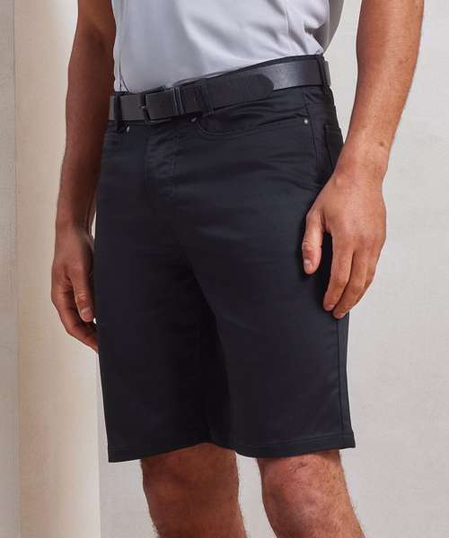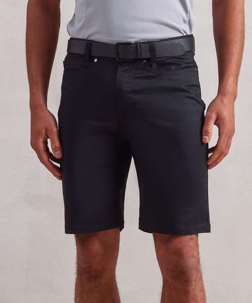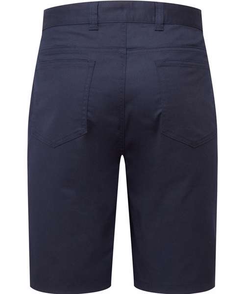 Men’s chino shorts with a touch of elastane for comfortable stretch performance. To the waistband there are loops to facilitate a belt, a metal button and a hook and bar for secure fastening. Covered YKK zip fly and side pockets with rivet detail for a typical ‘chino’ look. Two patch pockets to the reverse. Finished with a double turned hem.