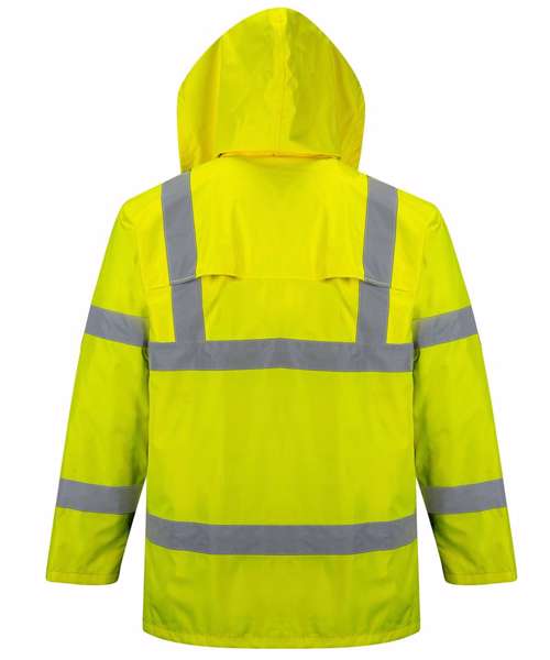 Certified to EN ISO 20471 Class 3 and EN343 Class 3:1. Designed to keep the wearer visible, safe and dry in foul weather conditions, the PW011 is extremely practical and waterproof. It offers exceptional value for money and can be perfectly matched with the hi-vis rain trouser. This garment can be easily rolled up and stored when not in use.