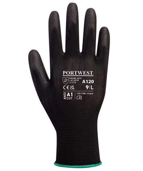 EN388:2016 (2.0.3.1.X) and EN420. The PU palm coated glove is ideal for light duty work. The seamless 13 gauge knitted nylon liner has a palm and finger PU coating providing excellent dexterity.