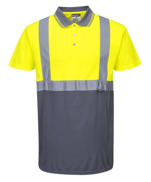 Modern design safety and wearer comfort are the main features of the S479. This style with a navy and new grey contrast is perfect for warm dirty environments where hi-vis protection is required. EN ISO 20471 Class 1.