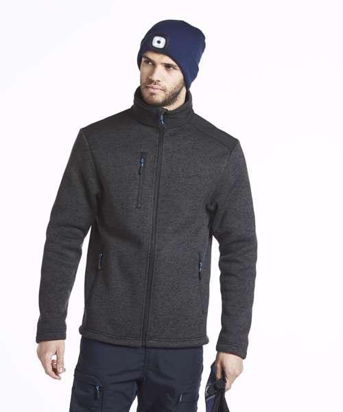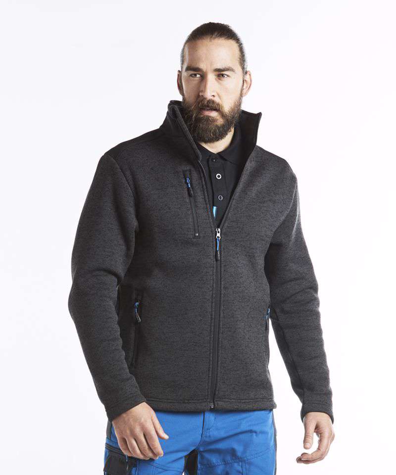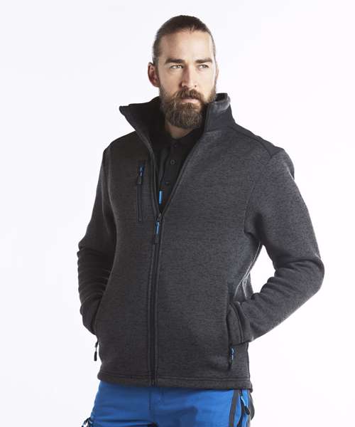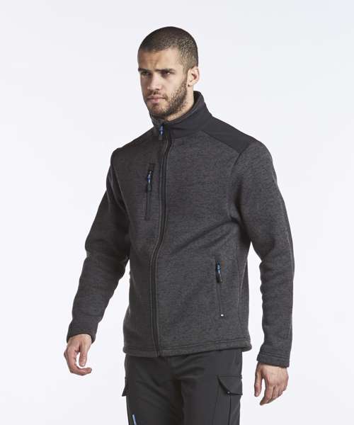 Contemporary work jacket made from a soft knitted fleece fabric ensuring that once you put it on you won't want to take it off. Reinforced shoulders and back panels offer added durability in heavy-use areas. Interchangeable zip pullers in blue red and lime green are supplied for easy integration of corporate colours. Designed with a modern fit this jacket hosts a range of practical features including a longer back length a rubber zip puller and multiple pockets.