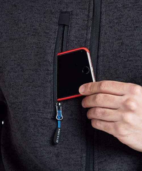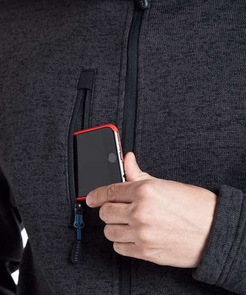 Chin guard. Zipped pockets. Front zip opening. Knitted fabric with brushed backing. 5-pockets. Internal pockets. Ideal for corporate wear and custom finishes. Reinforced panels . Registered Community Design. Contemporary design with clean cut lines. Dropped back hem. Interchangeable zip pullers.