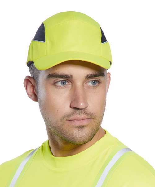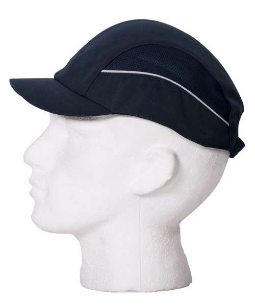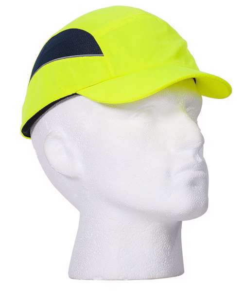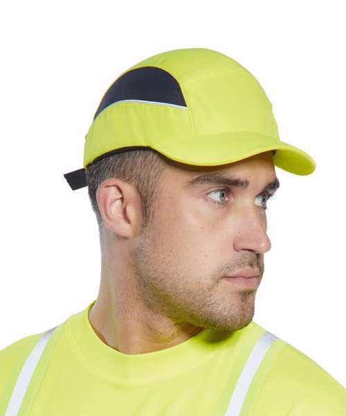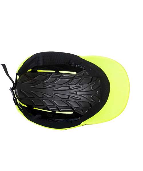 Innovative design bump cap. Maximised ventilation thanks to the side mesh and wide open windows on the inner shell. Modern textile design with reflective piping for better visibility. The mid-length peak makes this bump cap suitable for all uses. Buckle adjustable size.