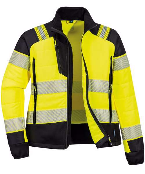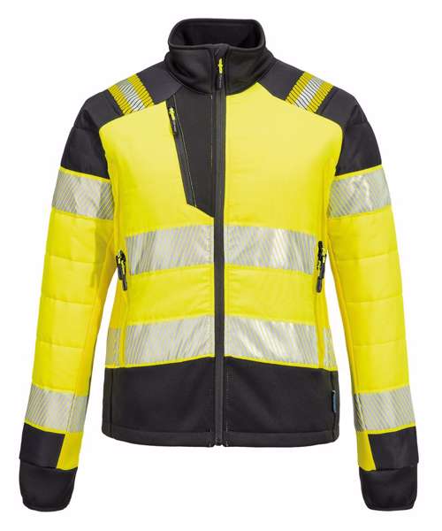The Women’s PW3 Hi-vis hybrid baffle jacket is designed for both comfort and protection. Made with durable, soft-touch, ripstop baffle fabric, it offers water resistance in an ergonomic fit. Stretch panelling enhances freedom of movement, while padded panels provide warmth. This jacket also features long double-pull side entry pockets for easy access, even when wearing a harness, with elasticated cuffs, an extended back length and contrast panels for added dirt protection.