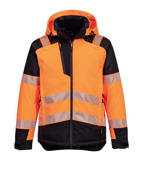 The PW3 Hi-vis winter jacket is designed with both comfort and protection in mind. Made from Portwest Extreme stretch soft-touch fabric, it’s both waterproof and windproof, ensuring the wearer stays dry in all conditions. The added Insulatex™ Pro thermal insulation maintains body temperature without adding extra weight. Certified to EN343 Class 4:1, this jacket features a two-way centre front zip, long double-pull side entry pockets for easy access, even when wearing a harness, a removable helmet-compatible hood with a shaped peak and three-point adjustment system, adjustable cuffs and an extended back length for added dirt protection.