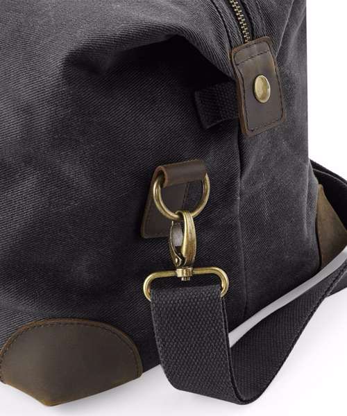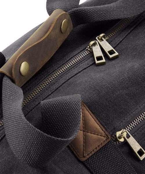 TearAway label for ease of rebranding. Genuine leather accents. Extra long main compartment zip for easy access. Snap fastening fold down ends. Cotton webbing carry handles. Antique brass effect fittings. Fully lined. Hidden lining zip for easy decoration access. Internal valuables pocket. Detachable adjustable shoulder strap. Can be carried by hand or over the shoulder. BSCI certified. Reach certified.