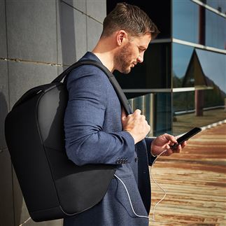 Designed with an integrated USB charging port, the project charge security backpack XL has compartments dedicated to storing laptops, tablets and ipads. The lightweight yet durable design offers easy storage for business travel and work meetings. With a power bank pocket and slash-proof construction, you can focus on the day ahead.