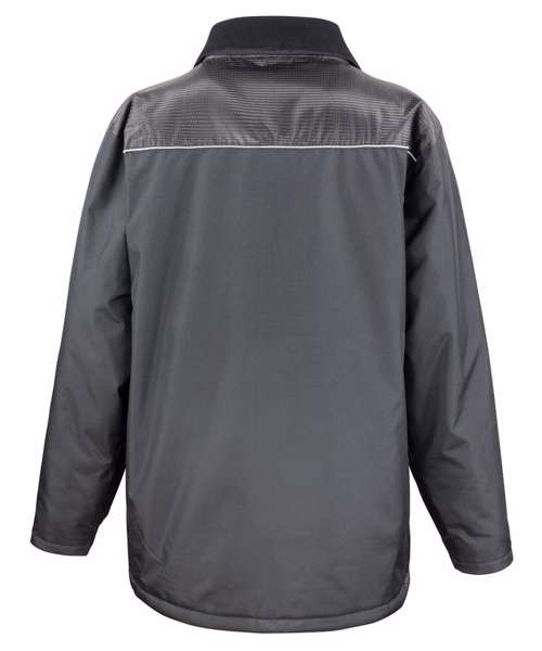 Full front heavy 2-way zip. Stud and tear release front storm flap. Zip-off adjustable hood. Adjustable shockcord hem. Front patch pockets with tear release close and side handwarmer entry, inside and outside chest pockets. Fully taped seams. Tear release external cuff with inner rib storm cuff. Reflective piping detail. Diamond quilted lining. Dobby design contrast panelling. Interchangeable pull system on all zips. Hangtag. Soft feel tricot lined collar.Decoration Guide:Decorating methods: Embroidery & Transfer print. Decorators access point: Inside left chest & lower back.