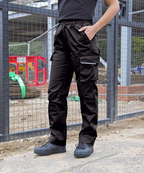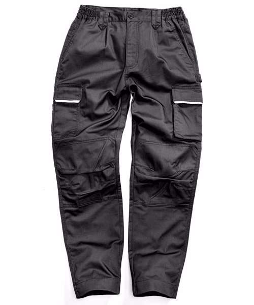 Breathable. Windproof. Comfort fit. Ready to brand. Durable and hardwearing. Co-ordinated Workguard range. Fantastic price point: price winner. Expansion waistband allows for adjustable fit and draught protection. Tear release pocket system with reflective trim. Knee pad pockets with articulated stitching. 2" hem for length adjustment. Twin-needle stitched seams. Zip fly with button fastening. Expansion waistband. Critical stress bar tacking. Deep side pockets. Hammer loop. Belt loops.