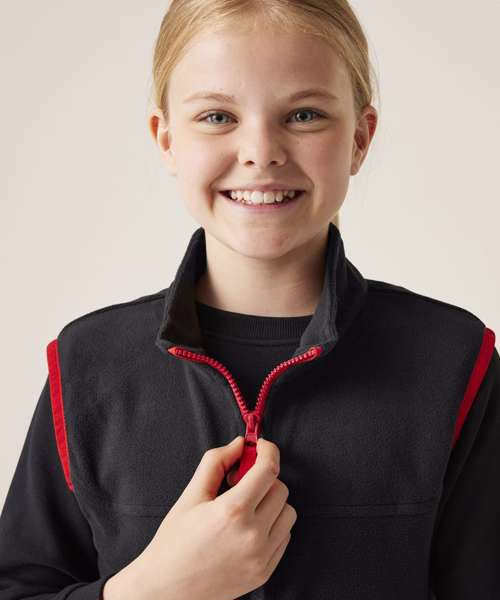 The kids microfleece kids bodywarmer from Regatta Professional is the perfect layer for mini adventurers. This gilet is made with comfy and lightweight microfleece, providing warmth without weight. There’s a brushed side for comfort and an anti-pill side for long-lasting wear.