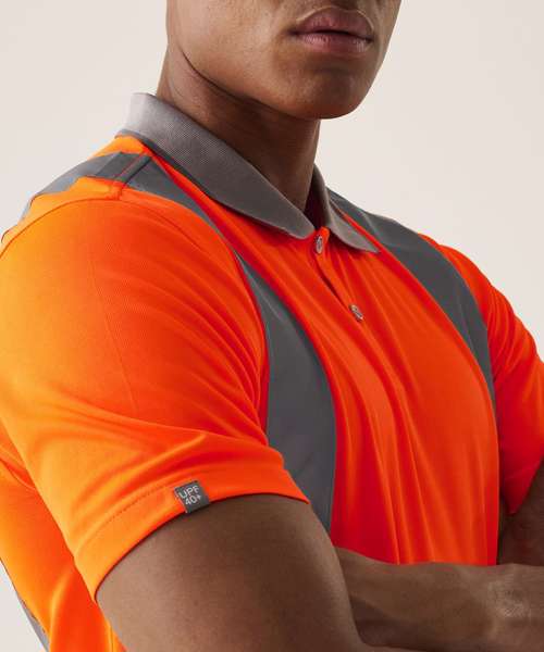 The Hi-vis Pro contract polo from Regatta Professional is the epitome of versatility and style. This high-visibility shirt keeps you cool with its lightweight fabric, boasts UPF 40+ protection and comes with good wicking performance to keep you fresh. Strategically positioned hi-vis strips enhance your visibility. Finished with a trendy button placket and collar.