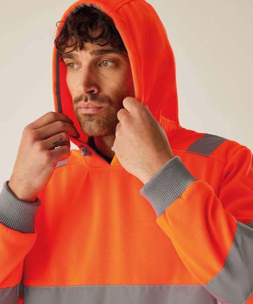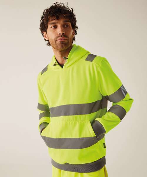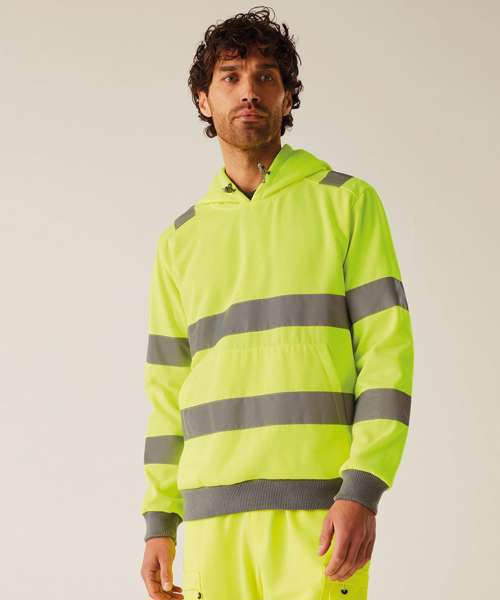 The Hi-vis Pro contract hoodie, from Regatta Professional, is certified for workplace safety and built for all-day comfort. It’s made with brushed fleece and features an adjustable hood, ribbed trims and a front kangaroo pocket to keep you warm and ready on the job.