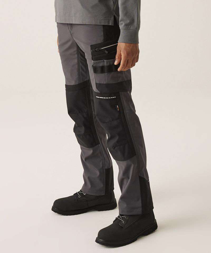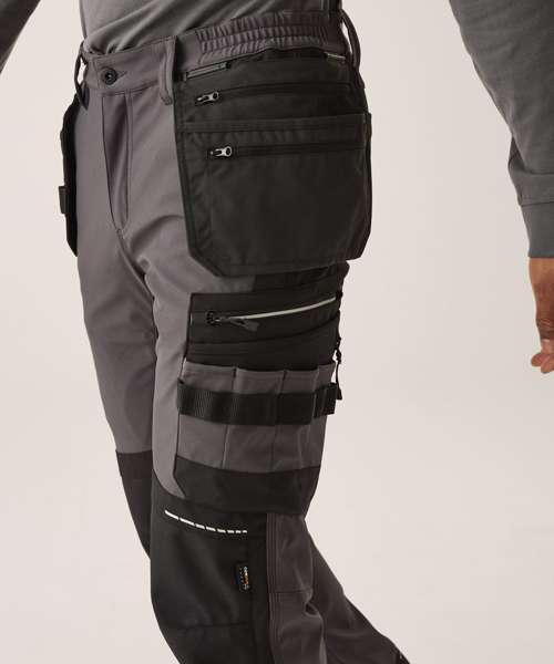 These stretch trousers, from Regatta Professional, are designed for lasting comfort and durability. The robust Cordura® fabric kneepad pockets and reinforced seams are designed to withstand the most demanding work environments, while detachable holsters, complete with generous tool pockets, add a layer of convenience and efficiency to your daily work routine.