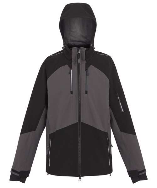 Waterproof and breathable Isotex 10000 stretch polyester fabric. Breathability rating: 10,000g/m²/24 hours. Conforms to EN343:3.3. Hard-wearing stretch ripstop fabric for added durability. Reach Technology – underarm gusset for maximum range of movement and unrestricted arm lift. Technical waterproof zips. Made using recycled materials.