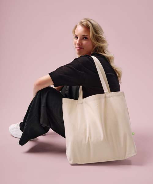 Canvas shopper. Large capacity with bottom gusset. Can be carried over the shoulder or by hand. Certified 200gsm organic cotton.