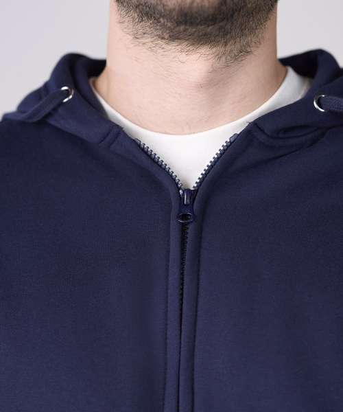 YKK zip and pull. Fully lined hood. Self-coloured adjustable drawcords. Brushed inner fleece. Ribbed cuff and hem. Inner fabric brushed fleece. Modern yet comfortable fit. Pouch pockets.